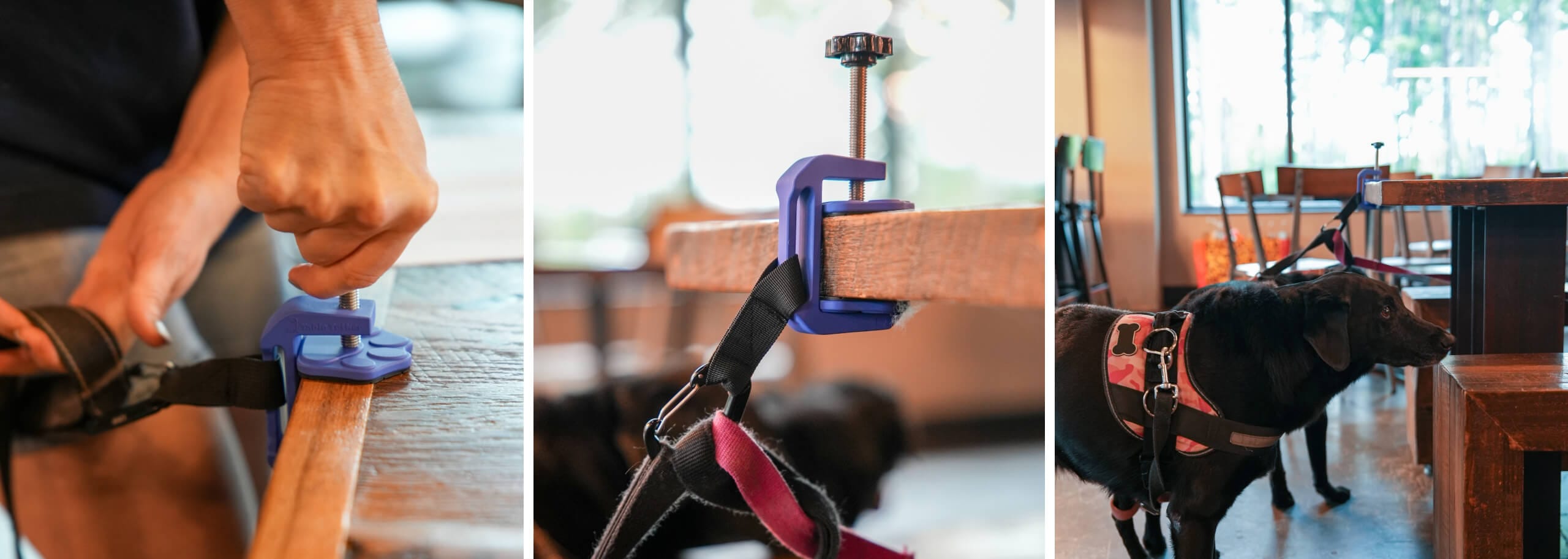 Table Tether is a portable leash hook, fully adjustable up to two inches to accommodate most surfaces. Owners can experience hands-free convenience with our durable, outdoor-ready pet restraint for use at all pet friendly establishments, parks, events and camping. Our product has been tested up to a 200 pound straight pull when properly applied, It is perfect for medium to large dogs. Table Tether is crafted from aircraft grade cast aluminum for durability, has rubberized pads for grip that won’t damage surfaces and utilizes a sturdy over-stitched lanyard for durability. Our product comes with a spring-loaded carabiner for ease of leash attachment and Table Tether is available in three colors and is the ONLY product on the market for this purpose.